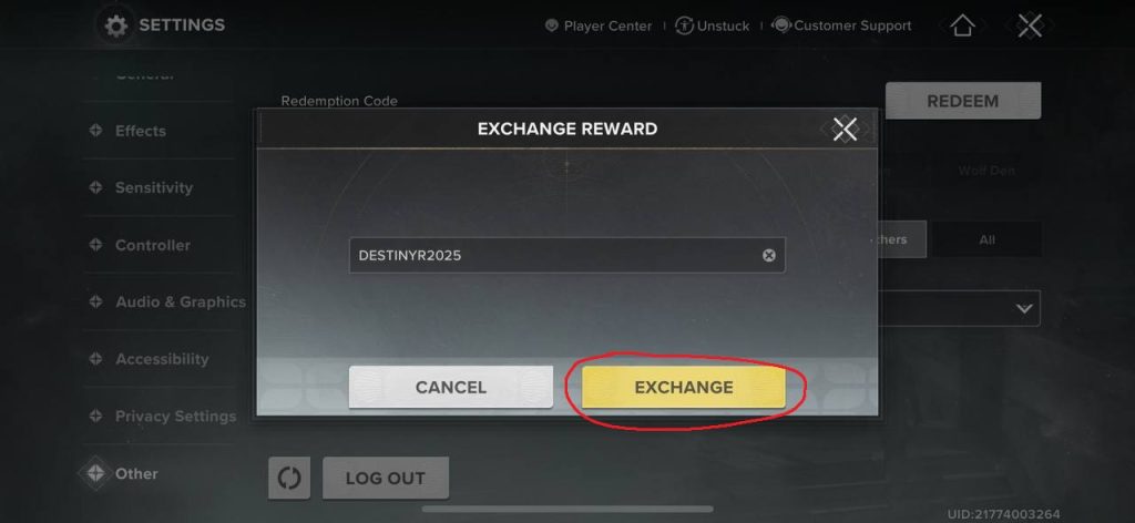 Нажмите кнопку Redeem рядом с пунктом Exchange.